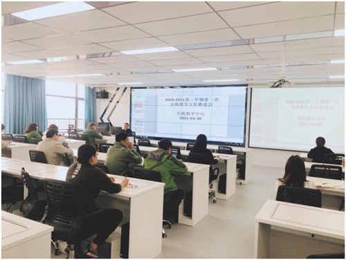 为了进一步推进实践教学工作,提升实践教学质量,2021年3月30日,实践教学中心在尚能楼4B301组织召开了2020-2021学年第二学期第一次实践教学工作推进会,会议由实践教学中心主任何旭主持,各二级学院分管实践教学副院长及各教研室主任参加了会议。