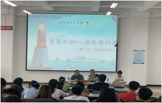 2021年9月10日下午14:00,在尚信楼1J101教室,实践教学中心副主任周立、实践教学管理科科长刘云参与了学院学生会组织的成长面对面活动,参与活动的有180名来自各二级学院的同学。