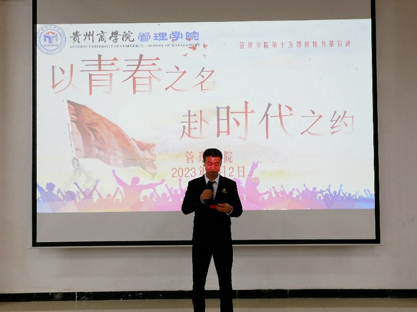 为发挥榜样学子带头作用,汲取青年榜样正能量,激励管院学子踔厉奋发,管理学院于2023年6月2日晚上19:00在尚智楼3J204教室开展了“以青春之名,赴时代之约”第十五期榜样力量宣讲活动。此次宣讲由三位榜样学子向同学们分享自己的经历及感悟。