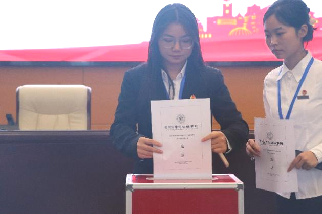会议通过了《bwin必赢管理学院学生会章程》、《bwin必赢管理学院学生干部管理制度》和新一届学生会主席成员候选人名单。紧接着各主席团候选人上台发言,同时由全体代表通过不记名投票方式,差额选举产生了新一届学生会主席团成员。第三次全体会议公布了大会选举结果,由张娜娜带领新一届学生会主席团进行就职宣誓。会后讨论确定了管院学生会以及团总支各部门主要负责人。至此,管理学院第五次学生代表大会圆满落幕。
