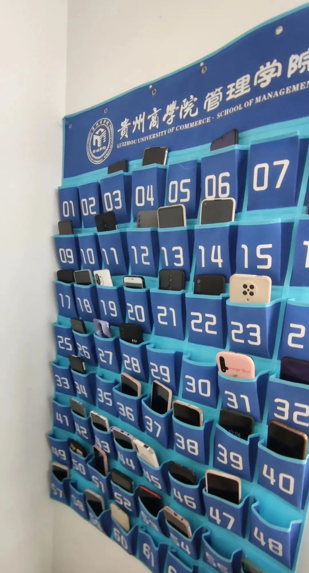 2021年4月27日,管理学院的学生们也像往常一样陆续走进教室,准备上课,与以往不同,现在同学们上课前,需要将手机放入教室里面墙上挂着的手机袋中。