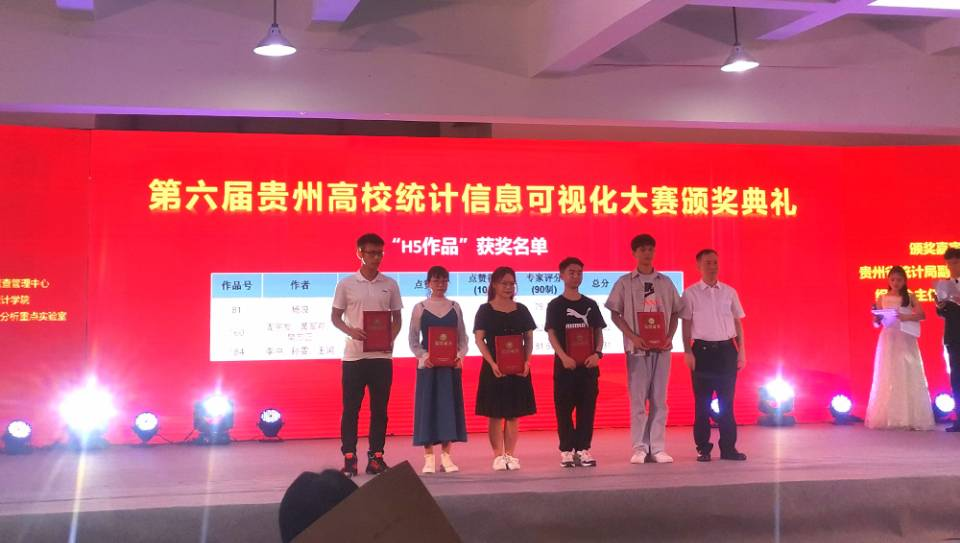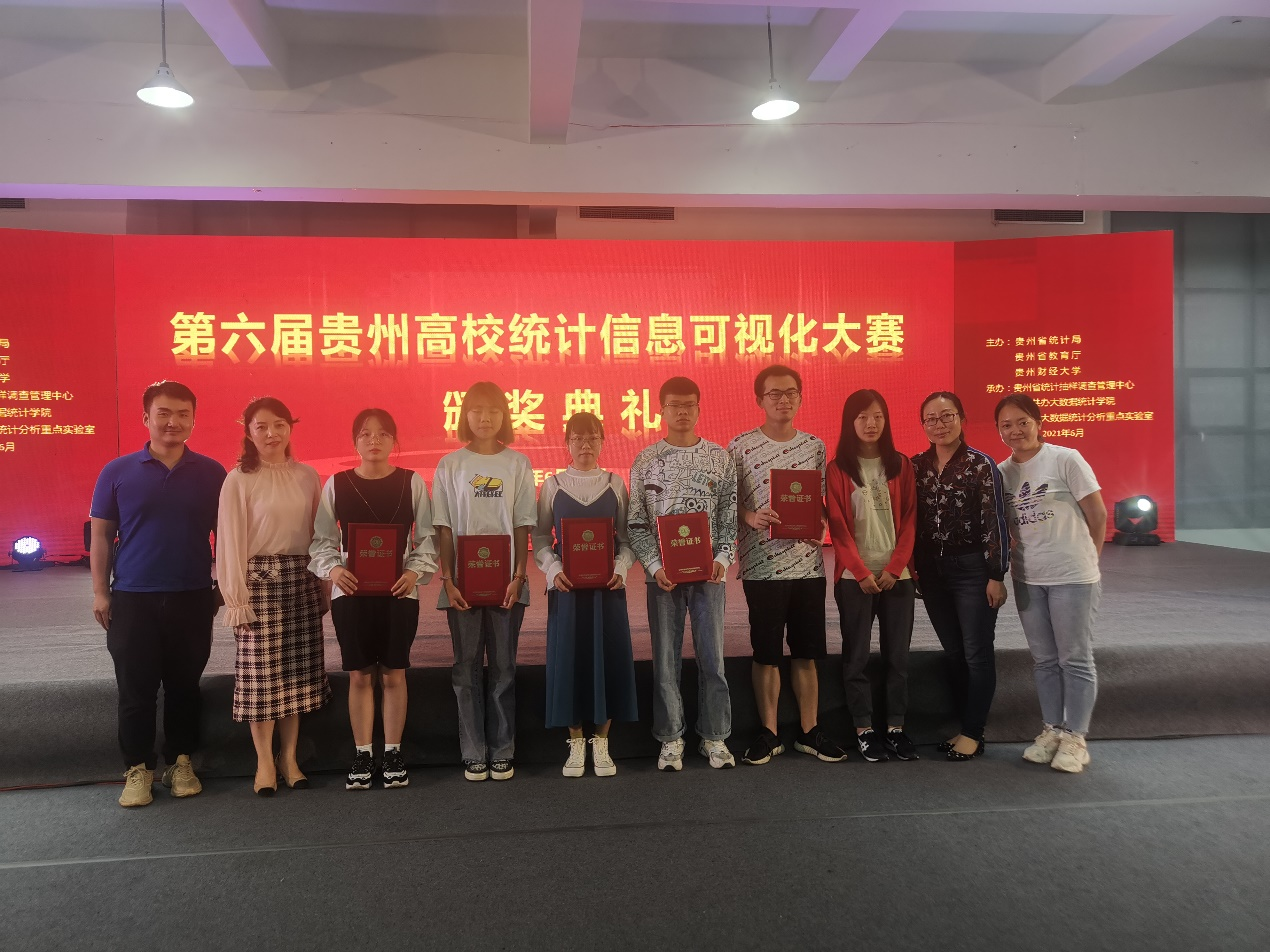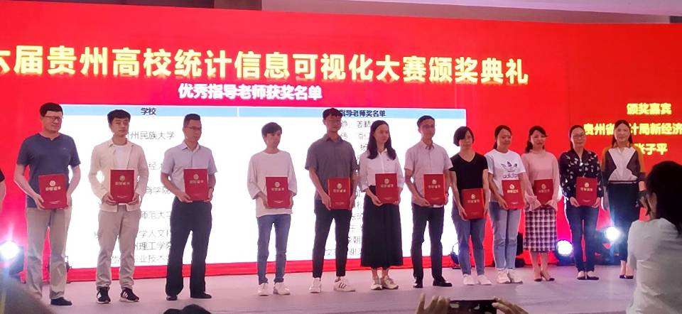 2021年6月29日下午,由贵州省统计局、贵州省教育厅、贵州财经大学联合举办的“贵州高校统计信息可视化大赛”颁奖典礼暨作品成果展在贵州财经大学花溪校区修德楼举办。本次大赛要求围绕“决战脱贫攻坚,决胜全面小康”主题,展示贵州脱贫攻坚工作成效。贵州省统计局、贵州省教育厅、贵州财经大学、贵州民族大学主要领导出席颁奖典礼并致辞。