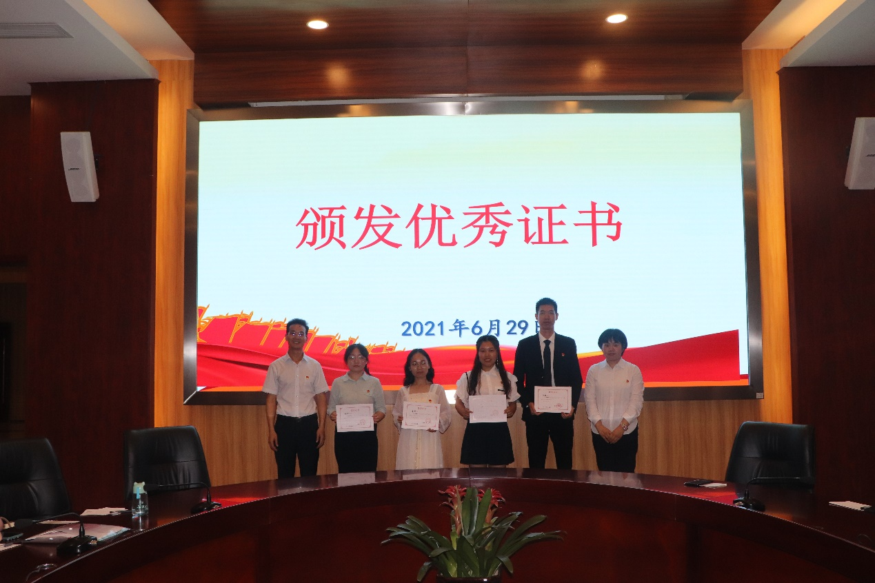 张艳丽老师为毕业生党员颁发优秀证书并对毕业生党员们提出了三点要求:一是对党忠诚,服从党组织管理,遵守党组织纪律,积极工作;二是把干净放在首位,到工作岗位后,要经得住职务、金钱的诱惑,廉洁奉公;三是做一名有担当的党员,把职责扛在肩头,再自己的岗位上发光发热。