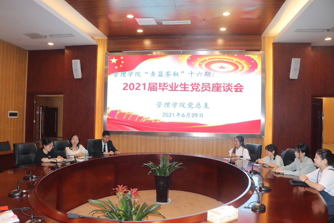 为加强毕业生党员的教育管理工作,6月29日下午3点,管理学院党总支在湖边会议中心第一会议室召开2021届毕业生党员座谈会,管理学院党总支书记田歆老师、管理学院副处级组织员张艳丽老师、毕业生党员代表参加。座谈会由管理学院学生党支部书记颜昌旭老师主持。