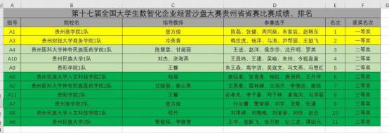 为贯彻实施教育部《关于加快建设高水平本科教育全面提高人才培养能力的意见》(教高[2018]2 号)、教育部、财政部、国家发改委《关于高等学校加快“双一流"建设的指导意见》 (教研[2018]5 号)等文件精神,推动落实党的十九大报告提出的。“全面贯彻党的教育方针,落实立德树人根本任务,发展素质教育”,配合国家高校创新创业人才培养燎原计划,中国商业联合会决定举办第十七届全国大学生数智化企业经营沙盘大赛,为此举办各省省区选拔赛。在贵州省区选拔赛上,管理学院派出两支队伍参赛。
