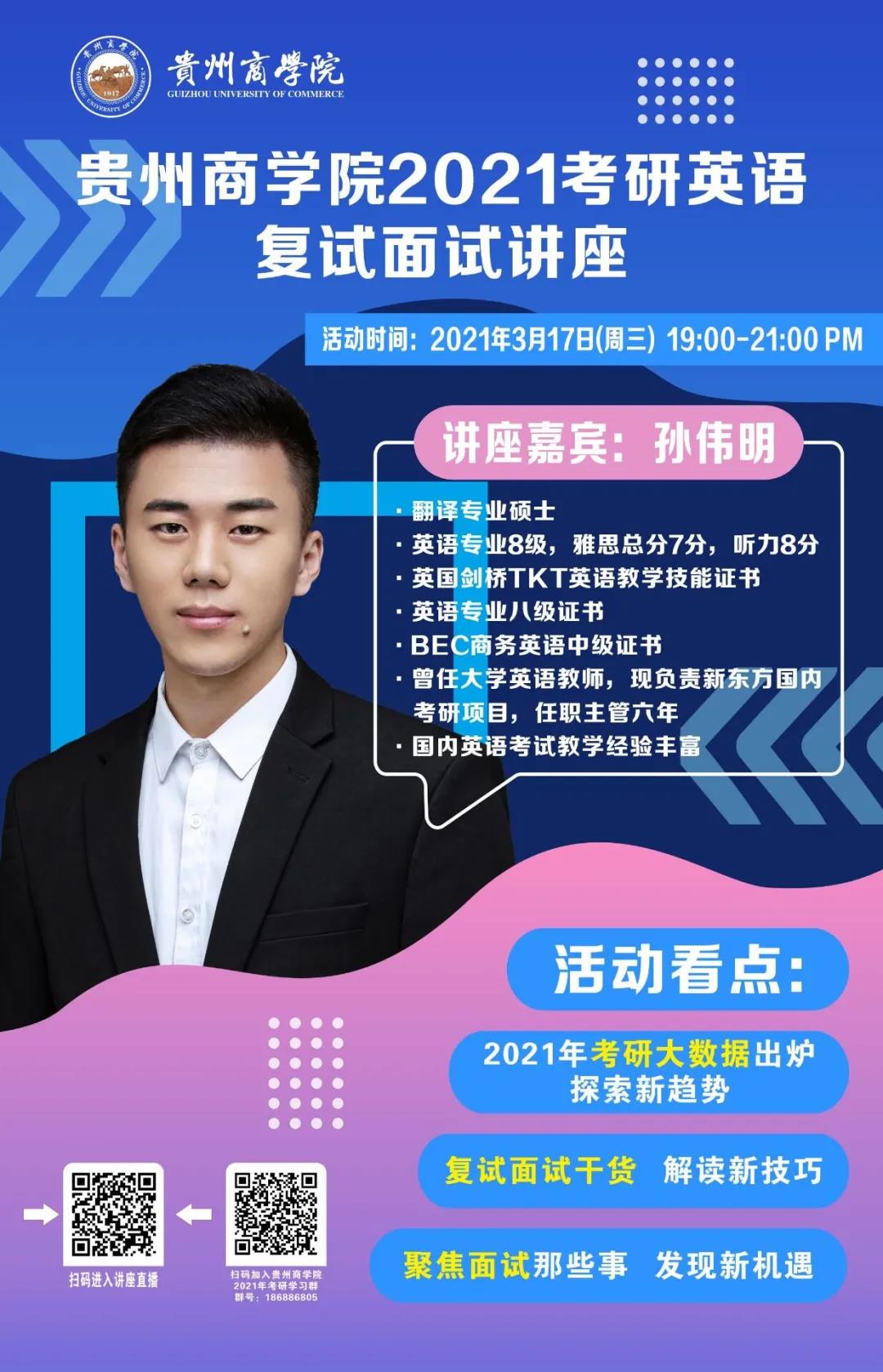 而英语作为考研的重要科目之一,也让很多小伙伴头疼,这时不妨来贵商课堂听一听孙伟明老师就2021考研英语的见解。
