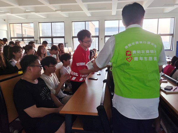 In order to further strengthen the integrity education of students in the the School of International Education, promote the work of funding education, and enhance students’ awareness of financial security, on May 29, 2023, the School of International Education held a lecture on financial security knowledge in Room 3J301 of Shangzhi Building. Yan Yong, the CPC Secretary of the School of International Education, Cai Fangli, Vice President of Guizhou Agricultural and Commercial Bank, Guanshanhu Branch, Yan Aimin, Manager of Guizhou Agricultural and Commercial Bank, Guanshanhu Branch, Zhao Xueshan, the teacher in charge of student affairs of the School of International Education, and students from the School of International Education attended the lecture. Wang Yanxiang, Manager of Guizhou Agricultural and Commercial Bank Guanshanhu Branch, gave a special presentation, and the lecture was hosted by Zhao Xiaomeng, a student of the School of International Education.