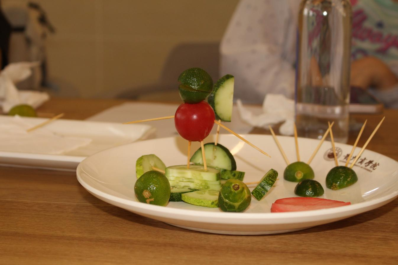 在酸味联想绘画环节,师生们在舒缓音乐中再度品味酸食,将内心难以言说的情感、回忆与困惑倾注于画笔,创作结束后,师生踊跃分享画作背后故事,深入分析内心世界。最具亮点的美食表情互动环节,充分展现了学生们的积极性与创造力。各小组利用酸萝卜、西红柿、水果等食材开展创意创作。其中,有一个小组以“远航的帆船,心理的酸咸”为主题,用青柠与牙签塑造小人,黄瓜片拼搭船体,以腌萝卜和柠檬点缀装饰,将味觉体验与生命哲思融入创作。该小组的同学表示,此次活动不仅是一次酸味食品的品尝与创作,更是一次心灵的感悟与成长。创作过程中,大家深刻体会到,青柠的酸涩恰似生活困境,却能催生前行动力;黄瓜船体象征面对困难的坚韧,腌萝卜与柠檬的装饰则寓意生活中的希望。制作的“帆船”被赋予象征意义——即便人生充满酸涩,亦需如船扬帆,以勇气与毅力直面挑战。同学们感慨,这次创作不仅让大家学会了团队合作,更明白了生活中的酸涩与挑战,正是成长的动力与契机。活动尾声,阮潇潇及心理健康教育教师对作品进行专业点评,肯定创意与情感表达,随后李井泉对活动进行总结,鼓励大家以乐观心态面对生活酸涩。
