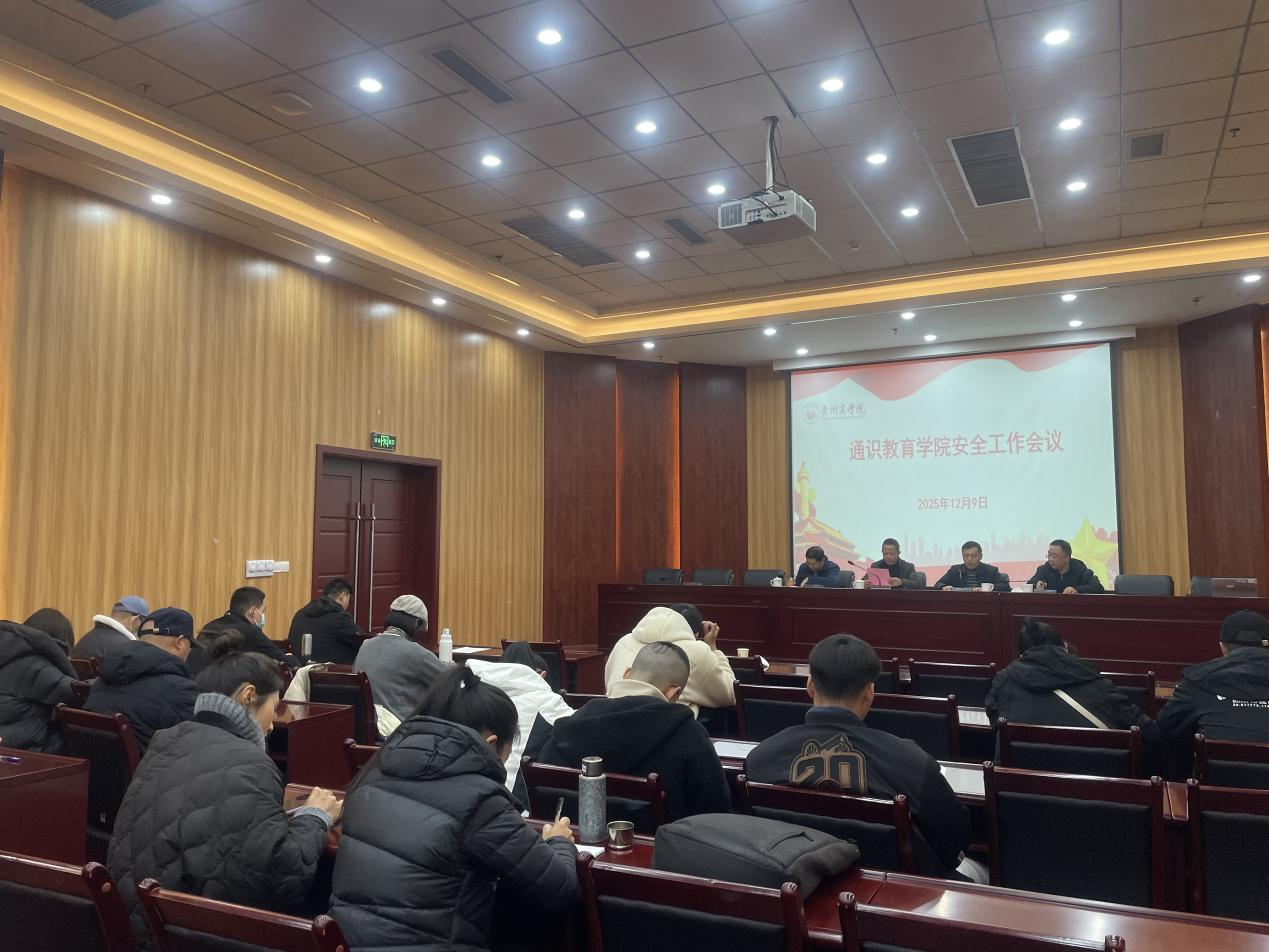 为贯彻落实省教育厅关于印发《贵州省校园安全预警工作机制》的通知,2025年12月9日,通识教育学院召开学院安全工作专题会议,传达学习国家和省委、省政府以及学校关于校园安全工作的系列要求,并对安全工作及传染病防治作出全面部署。